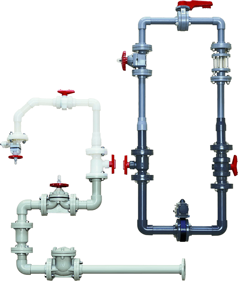 閥門系列產(chǎn)品如:隔膜閥、蝶閥、球閥、截止閥、止回閥、耐腐蝕泵等。主要材質(zhì)有CPVC、UPVC、PVDF、PPH、FRPP等。